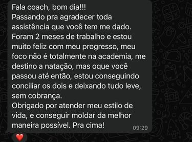 Minha abordagem vai além de montar treinos: eu acompanho de perto cada aluno, ajustando estratégia, corrigindo execução e garantindo evolução contínua.